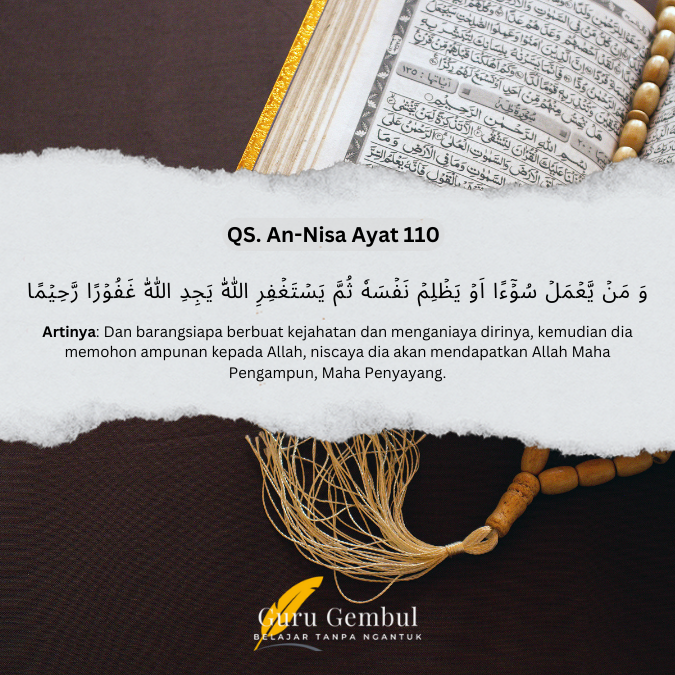 Artinya: Dan barangsiapa berbuat kejahatan dan menganiaya dirinya, kemudian dia memohon ampunan kepada Allah, niscaya dia akan mendapatkan Allah Maha Pengampun, Maha Penyayang.